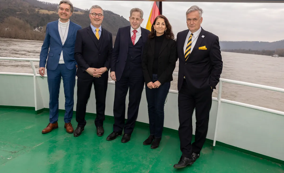 Der neue Vorstand von l.n.r. Alexander Mitsch, Albert Weiler, der Vorsitzende Hans-Georg Maaßen, Sylvia Kaufhold und Kay-Achim Schönbach   Am 17.2.2024 wurde unsere Partei in Bonn gegründet. Die ersten 55 Mitglieder unterzeichneten auf einem Schiff bei Bonn die Gründungsurkunde. Sie beschlossen ein Parteiprogramm und wählten Dr. Maaßen als Bundesvorsitzenden sowie